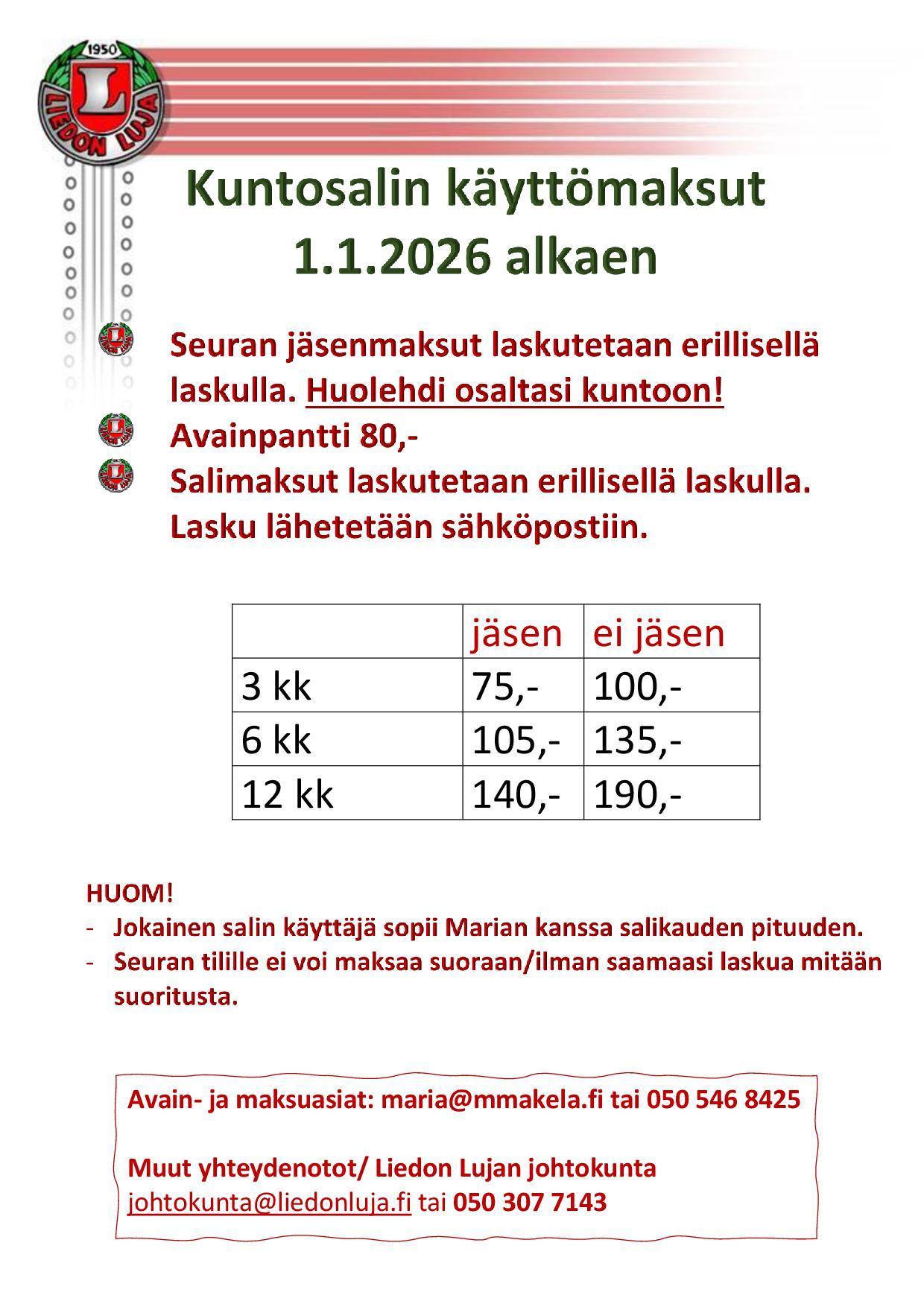 Jos olet aikeissa tuoda omia välineitä kuntosalille, ota ensin yhteyttä Liedon Lujan hallitukseen